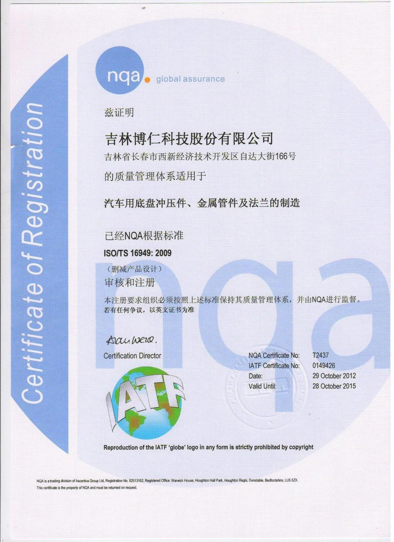 公司順利通過ISO/TS 16949:2009質量體系認證,并嚴格按照體系相關要求控制產品質量,在客戶中樹立了良好的口碑...